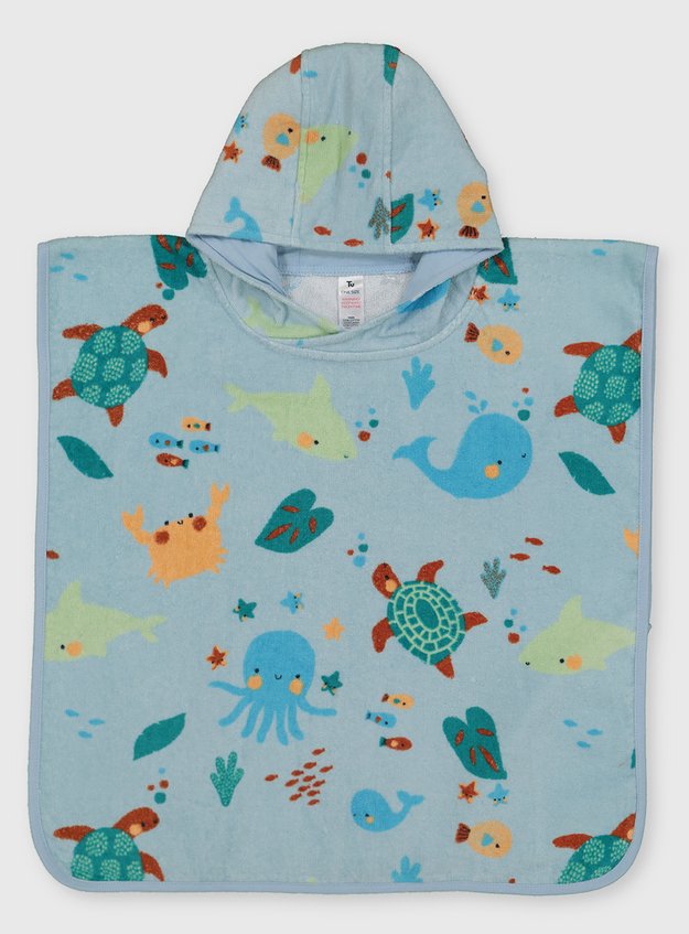 Baby Blue Sealife Print Hooded Towel Poncho One Size Tu Clothing