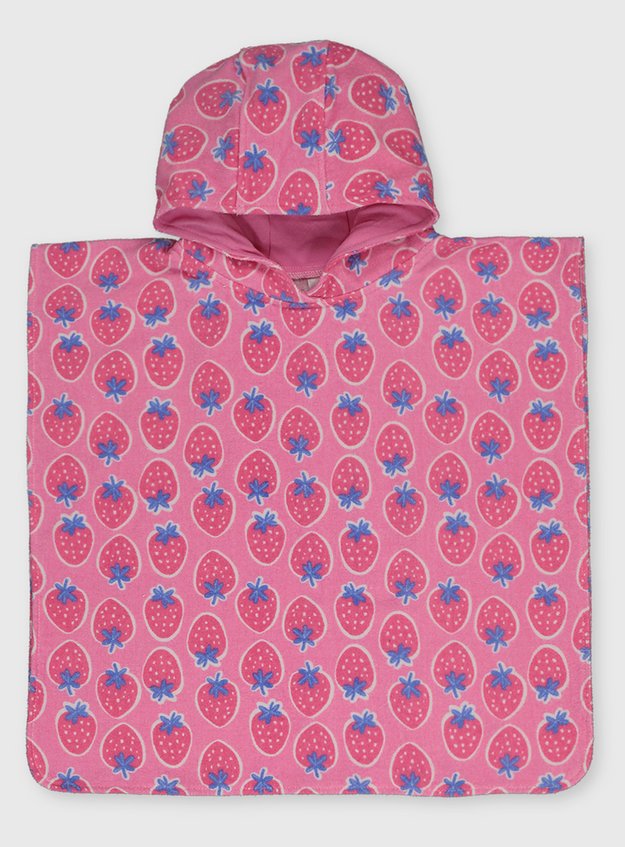 Baby Pink Strawberry Hooded Poncho Towel One Size Tu Clothing